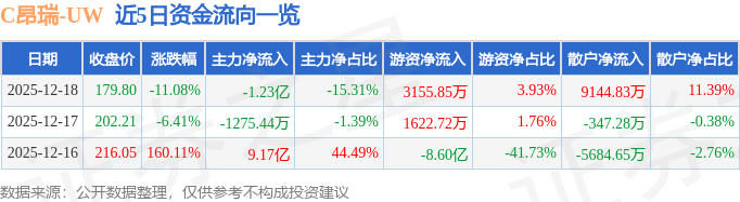 证券之星消息,截至2025年12月18日收盘,C昂瑞(688790)报收于179.8元,下跌11.08%,换手率35.19%,成交量4.24万手,成交额8.03亿元。