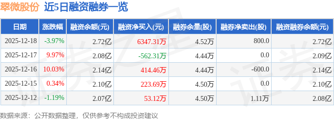 证券之星消息,截至2025年12月18日收盘,翠微股份(603123)报收于13.56元,下跌3.97%,换手率18.09%,成交量118.0万手,成交额16.14亿元。