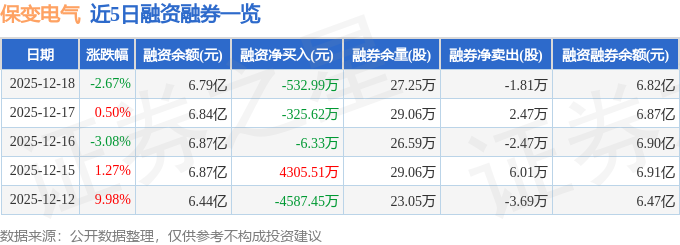 保变电气融资融券信息显示,融资方面,当日融资买入7658.54万元,融资偿还8191.53万元,融资净偿还532.99万元。融券方面,融券卖出9000.0股,融券偿还2.71万股,融券余量27.25万股,融券余额268.14万元。融资融券余额6.82亿元。