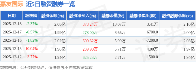 证券之星消息,截至2025年12月18日收盘,嘉友国际(603871)报收于13.58元,下跌2.37%,换手率0.74%,成交量10.18万手,成交额1.4亿元。
