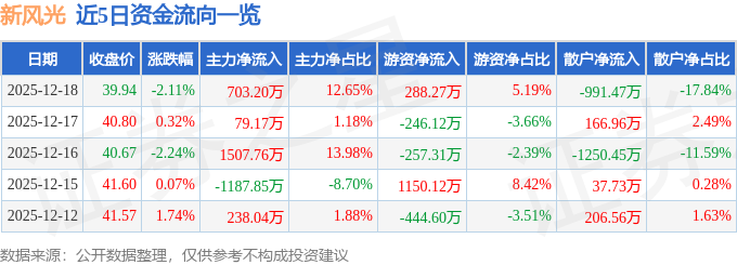证券之星消息,截至2025年12月18日收盘,新风光(688663)报收于39.94元,下跌2.11%,换手率0.98%,成交量1.39万手,成交额5558.88万元。