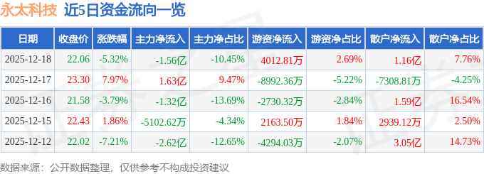 12月18日的资金流向数据方面,主力资金净流出1.56亿元,占总成交额10.45%,游资资金净流入4012.81万元,占总成交额2.69%,散户资金净流入1.16亿元,占总成交额7.76%。