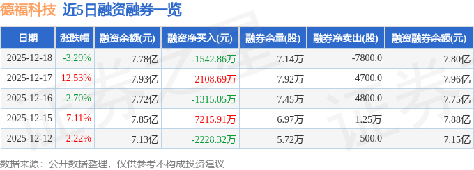 证券之星消息,截至2025年12月18日收盘,德福科技(301511)报收于37.62元,下跌3.29%,换手率11.31%,成交量42.37万手,成交额16.12亿元。