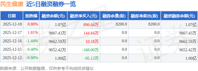 证券之星消息,截至2025年12月18日收盘,民生健康(301507)报收于15.95元,上涨8.8%,换手率19.27%,成交量21.04万手,成交额3.25亿元。