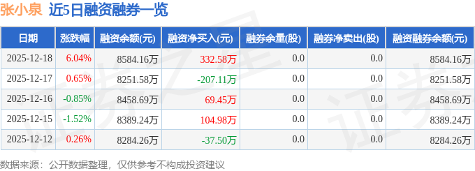 张小泉融资融券信息显示,融资方面,当日融资买入1082.9万元,融资偿还750.32万元,融资净买入332.58万元。融券方面,融券卖出0.0股,融券偿还0.0股,融券余量0.0股,融券余额0.0万元。融资融券余额8584.16万元。