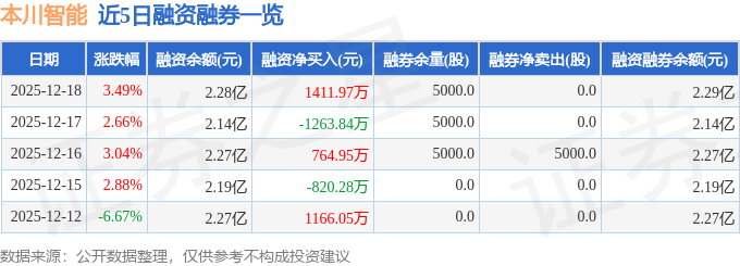 本川智能融资融券信息显示,融资方面,当日融资买入7090.27万元,融资偿还5678.3万元,融资净买入1411.97万元。融券方面,融券卖出0.0股,融券偿还0.0股,融券余量5000.0股,融券余额31.3万元。融资融券余额2.29亿元。