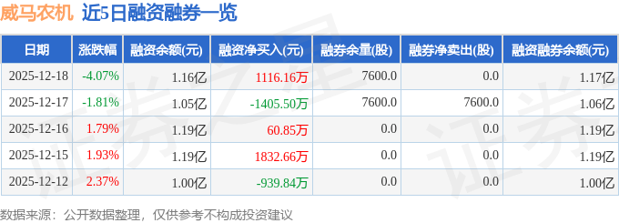 证券之星消息,截至2025年12月18日收盘,威马农机(301533)报收于39.6元,下跌4.07%,换手率14.85%,成交量4.22万手,成交额1.7亿元。