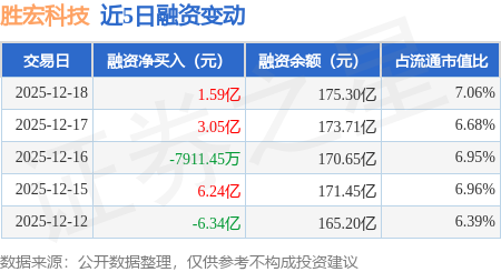 证券之星消息,12月18日,胜宏科技(300476)融资买入16.37亿元,融资偿还14.78亿元,融资净买入1.59亿元,融资余额175.3亿元,当日融资净买入排名第16,近20个交易日中有14个交易日出现融资净买入。