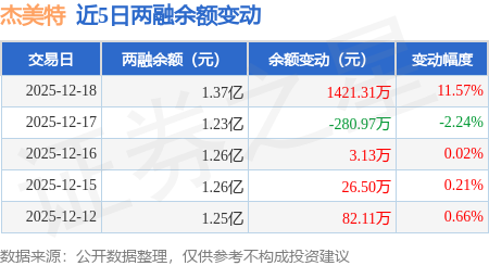证券之星消息,12月18日,杰美特(300868)融资买入2130.93万元,融资偿还709.62万元,融资净买入1421.31万元,融资余额1.37亿元,近20个交易日中有14个交易日出现融资净买入。