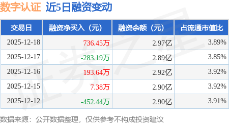 证券之星消息,12月18日,数字认证(300579)融资买入1437.84万元,融资偿还701.39万元,融资净买入736.45万元,融资余额2.97亿元。