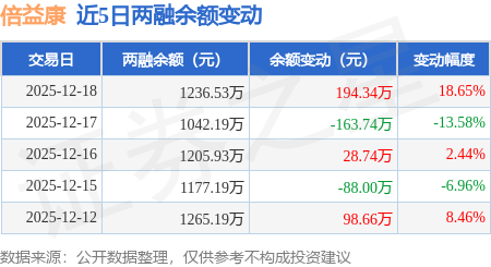 证券之星消息,12月18日,倍益康(920199)融资买入518.66万元,融资偿还324.32万元,融资净买入194.34万元,融资余额1236.53万元,近20个交易日中有11个交易日出现融资净买入。