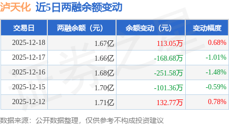 证券之星消息,12月18日,泸天化(000912)融资买入373.19万元,融资偿还260.2万元,融资净买入112.99万元,融资余额1.67亿元,近20个交易日中有11个交易日出现融资净买入。