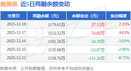 证券之星消息,12月18日,奥美森(920080)融资买入89.91万元,融资偿还62.78万元,融资净买入27.13万元,融资余额1179.65万元。
