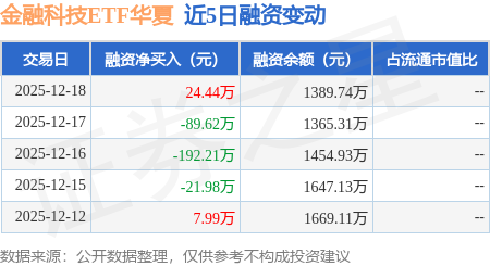 证券之星消息,12月18日,金融科技ETF华夏(516100)融资买入173.56万元,融资偿还149.12万元,融资净买入24.44万元,融资余额1389.74万元。