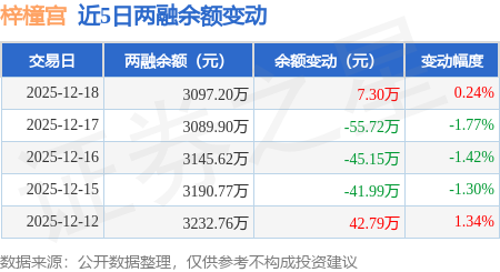 证券之星消息,12月18日,梓橦宫(920566)融资买入24.56万元,融资偿还17.26万元,融资净买入7.3万元,融资余额3097.2万元,近20个交易日中有11个交易日出现融资净买入。