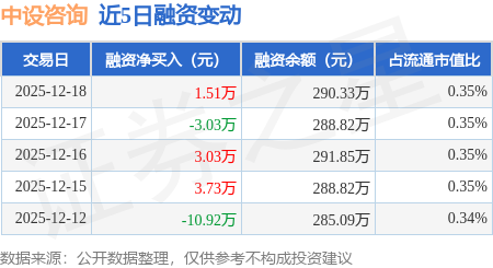 证券之星消息,12月18日,中设咨询(920873)融资买入1.51万元,融资偿还0.0万元,融资净买入1.51万元,融资余额290.33万元。