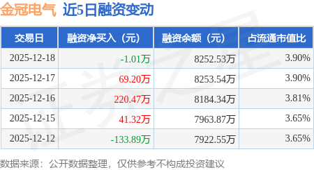 证券之星消息,12月18日,金冠电气(688517)融资买入339.92万元,融资偿还340.93万元,融资净卖出1.01万元,融资余额8252.53万元。