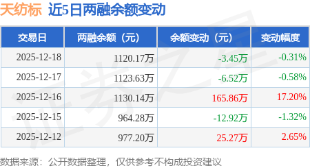 证券之星消息,12月18日,天纺标(920753)融资买入36.64万元,融资偿还40.09万元,融资净卖出3.45万元,融资余额1120.17万元。