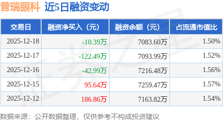 证券之星消息,12月18日,普瑞眼科(301239)融资买入236.3万元,融资偿还246.69万元,融资净卖出10.39万元,融资余额7083.6万元。