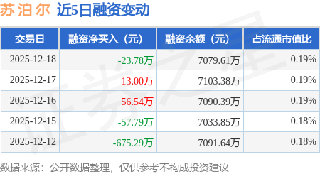 证券之星消息,12月18日,苏 泊 尔(002032)融资买入213.05万元,融资偿还236.83万元,融资净卖出23.78万元,融资余额7079.61万元。