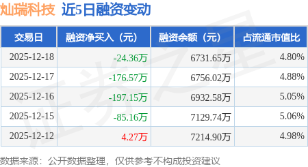 证券之星消息,12月18日,灿瑞科技(688061)融资买入177.69万元,融资偿还202.06万元,融资净卖出24.36万元,融资余额6731.65万元。