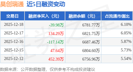 证券之星消息,12月18日,昊创瑞通(301668)融资买入466.06万元,融资偿还506.04万元,融资净卖出39.98万元,融资余额6781.77万元。