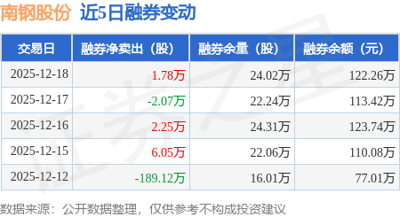 证券之星消息,12月18日,南钢股份(600282)融资买入508.71万元,融资偿还563.17万元,融资净卖出54.46万元,融资余额1.86亿元。