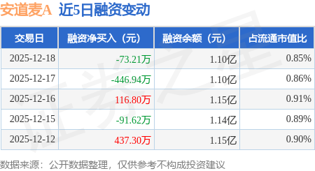 证券之星消息,12月18日,安道麦A(000553)融资买入200.19万元,融资偿还273.4万元,融资净卖出73.21万元,融资余额1.1亿元。