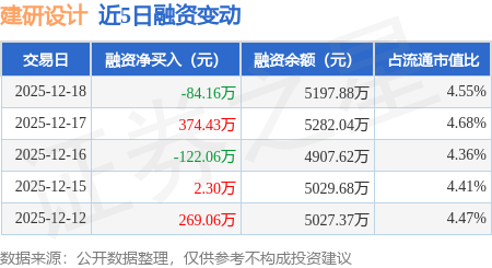 证券之星消息,12月18日,建研设计(301167)融资买入240.99万元,融资偿还325.15万元,融资净卖出84.16万元,融资余额5197.88万元。