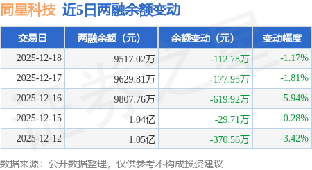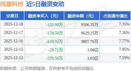证券之星消息,12月18日,同星科技(301252)融资买入442.33万元,融资偿还565.23万元,融资净卖出122.9万元,融资余额9506.35万元。