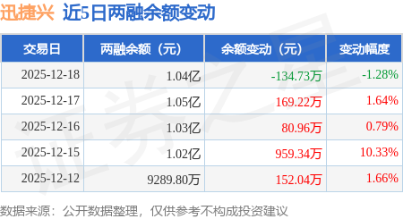 证券之星消息,12月18日,迅捷兴(688655)融资买入180.4万元,融资偿还315.12万元,融资净卖出134.73万元,融资余额1.04亿元。