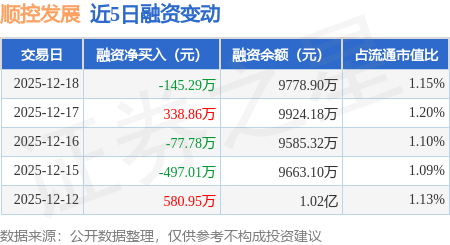 证券之星消息,12月18日,顺控发展(003039)融资买入803.9万元,融资偿还949.19万元,融资净卖出145.29万元,融资余额9778.9万元,近20个交易日中有11个交易日出现融资净买入。