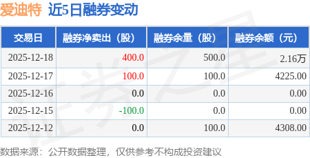 融券方面,当日融券卖出400.0股,融券偿还0.0股,融券净卖出400.0股,融券余量500.0股,近20个交易日中有12个交易日出现融券净卖出。