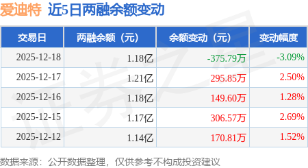 证券之星消息,12月18日,爱迪特(301580)融资买入511.73万元,融资偿还889.27万元,融资净卖出377.53万元,融资余额1.18亿元,近20个交易日中有11个交易日出现融资净买入。