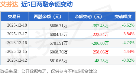 证券之星消息,12月18日,艾芬达(301575)融资买入478.16万元,融资偿还875.6万元,融资净卖出397.43万元,融资余额5606.71万元。