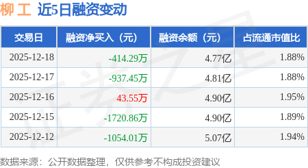 证券之星消息,12月18日,柳 工(000528)融资买入1072.85万元,融资偿还1487.14万元,融资净卖出414.29万元,融资余额4.77亿元。