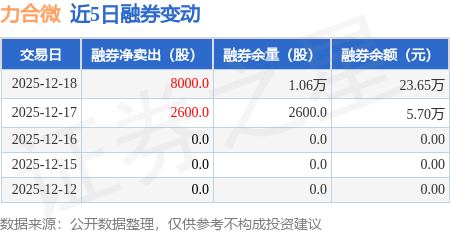 证券之星消息,12月18日,力合微(688589)融资买入549.53万元,融资偿还1118.56万元,融资净卖出569.02万元,融资余额2.04亿元。