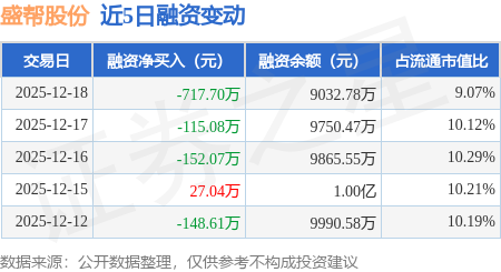 证券之星消息,12月18日,盛帮股份(301233)融资买入375.86万元,融资偿还1093.55万元,融资净卖出717.7万元,融资余额9032.78万元。
