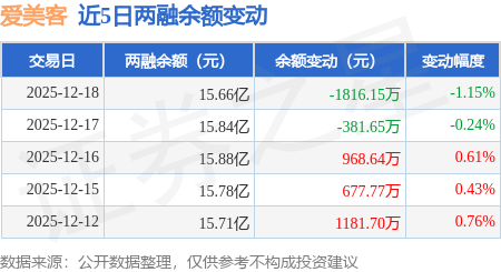 证券之星消息,12月18日,爱美客(300896)融资买入5341.89万元,融资偿还7185.97万元,融资净卖出1844.08万元,融资余额15.62亿元,近20个交易日中有11个交易日出现融资净买入。
