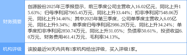 2025年9月22日,天风证券研究员孙海洋发布了对创源股份的研报《拟回购股份+参与成立产业基金,期待业务加速》,该研报对创源股份给出“买入”评级。证券之星数据中心根据近三年发布的研报数据计算,该研报作者对此股的盈利预测准确度为69.97%。