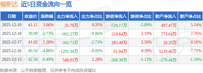证券之星消息,截至2025年12月19日收盘,福斯达(603173)报收于41.12元,上涨3.06%,换手率4.46%,成交量2.21万手,成交额8983.18万元。
