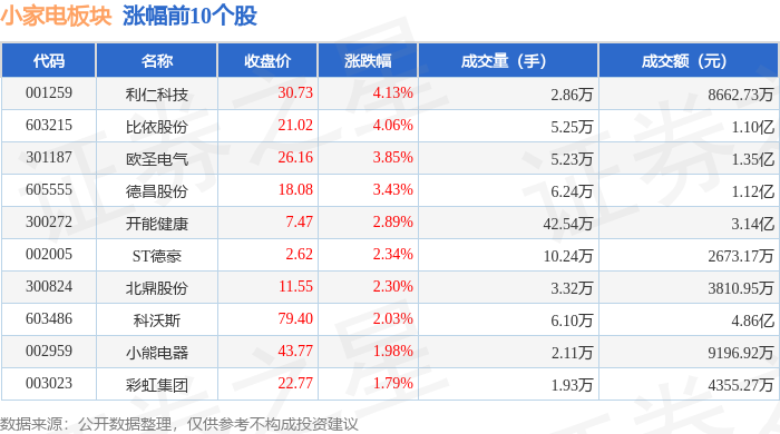 从资金流向上来看,当日小家电板块主力资金净流入4203.83万元,游资资金净流出3540.19万元,散户资金净流出663.64万元。小家电板块个股资金流向见下表: