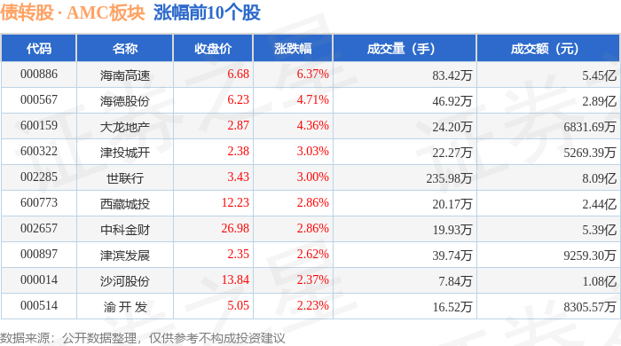从资金流向上来看,当日债转股 · AMC板块主力资金净流出2.1亿元,游资资金净流出4874.94万元,散户资金净流入2.58亿元。债转股 · AMC板块个股资金流向见下表: