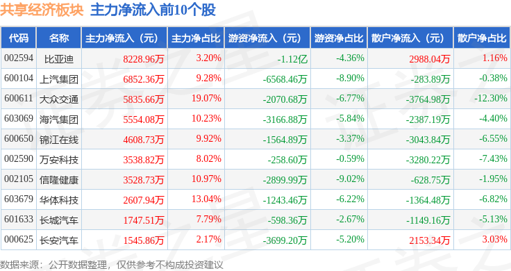 从资金流向上来看,当日共享经济板块主力资金净流入3.66亿元,游资资金净流出4.22亿元,散户资金净流入5558.63万元。共享经济板块个股资金流向见下表: