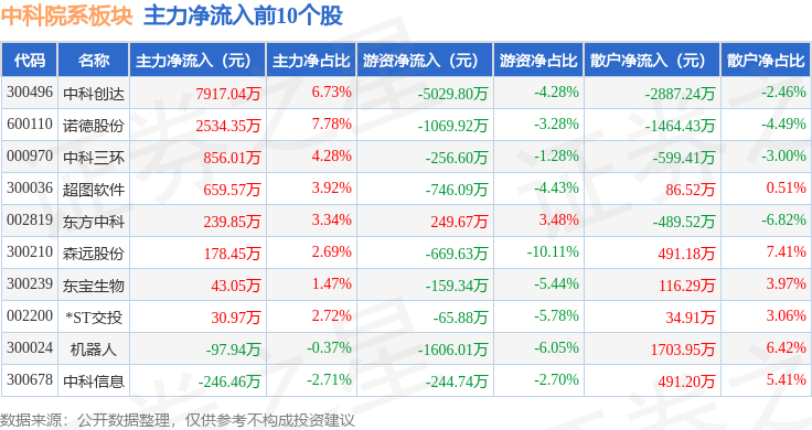 从资金流向上来看,当日中科院系板块主力资金净流出3.51亿元,游资资金净流出1566.99万元,散户资金净流入3.67亿元。中科院系板块个股资金流向见下表: