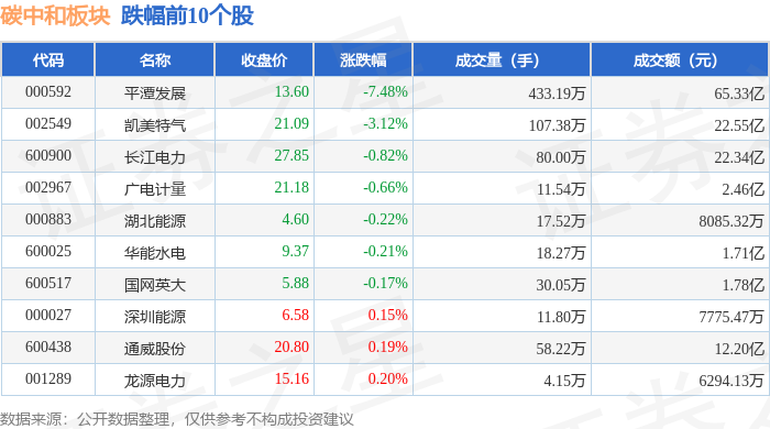 从资金流向上来看,当日碳中和板块主力资金净流入6.33亿元,游资资金净流出4.11亿元,散户资金净流出2.21亿元。碳中和板块个股资金流向见下表: