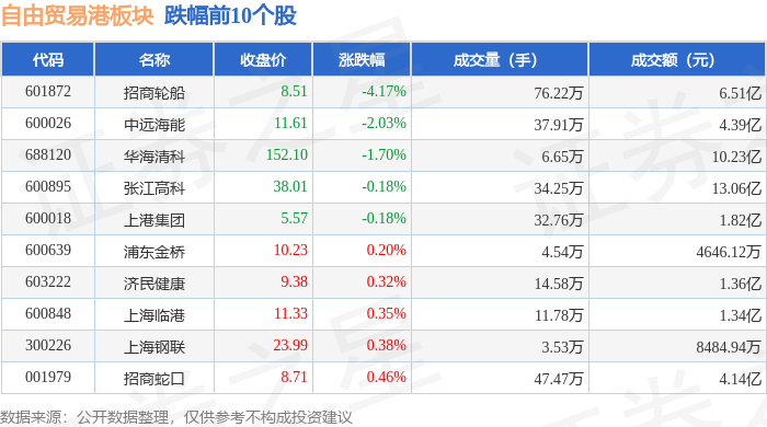 从资金流向上来看,当日自由贸易港板块主力资金净流入10.19亿元,游资资金净流出9.39亿元,散户资金净流出7998.59万元。自由贸易港板块个股资金流向见下表: