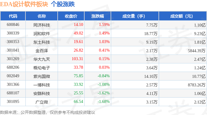 证券之星消息,12月19日EDA设计软件板块较上一交易日下跌0.02%,广立微领跌。当日上证指数报收于3890.45,上涨0.36%。深证成指报收于13140.22,上涨0.66%。EDA设计软件板块个股涨跌见下表: