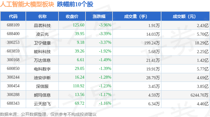 从资金流向上来看,当日人工智能大模型板块主力资金净流出1.9亿元,游资资金净流出5.18亿元,散户资金净流入7.08亿元。人工智能大模型板块个股资金流向见下表: