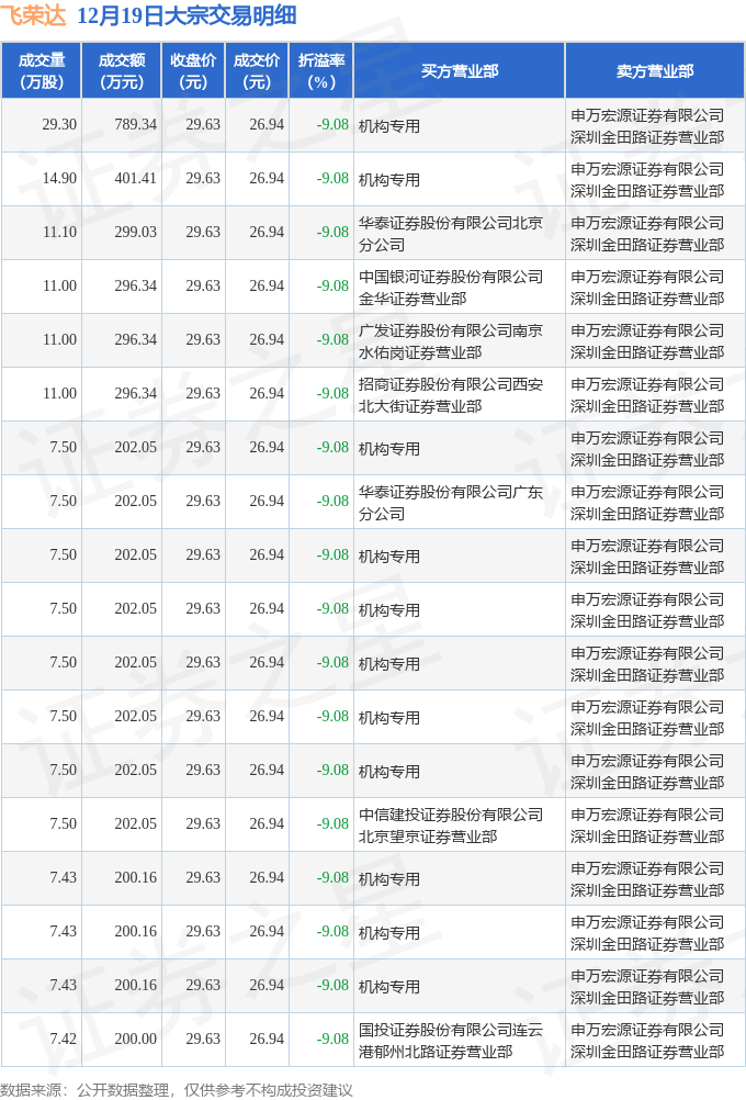证券之星消息,12月19日飞荣达发生大宗交易,交易数据如下: